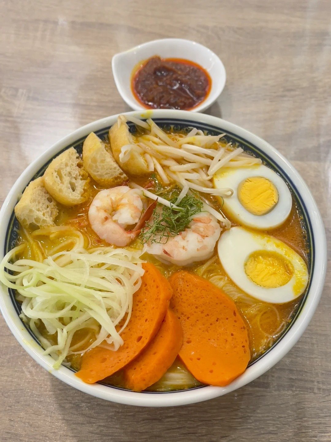 Kota Damansara的Mama Jia,将娘惹菜与马六甲家常味融合得恰到好处。娘惹拉沙汤底浓郁顺口,米暹配咖喱鸡香味四溢。炸鸡椰浆饭外酥内嫩,每一口都温暖人心。鱼饺面清香滑顺,甜点Cendol雪花冰完美收尾。藤椅与蓝瓷砖布置,充满老马六甲情怀。